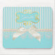 Pearls and Lace Aqua Stripes Cream Bow With Name Mouse Pad