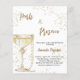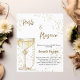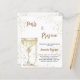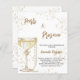 A modern, stylish and glamourous invitation for a Pearls and Prosecco Bridal Shower. A white background with bubbles, a glass with bubbles and pearls. The name is written with a modern hand lettered style script. Personalise and add your party details.
