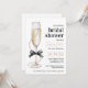 Elegant 'Pearls and Prosecco' Bridal Shower Invitation featuring a black bow, champagne glass, and chic pearl accents. Perfect for a stylish brunch bridal shower.