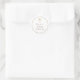 The sticker is made on wonderful paper and had no problem sticking to the bag that I purchased to put it on. I wanted to find a design that would be cute for the bride and groom and this one fit the bill as it has cute "bees" buzzing around and the wedding was taking place in a town called "Bee Cave". The packaging was great and protected the stickers. The website is easy to navigate and there are so many color choices. I had no problem finding a color that the bride was using on everything else selected. The design was adorable and there were many to choose from. You can make the figure as larger or smaller and you can place the photo and writting whereever you want to in the sticker. The printing is fabulous..better than expected.