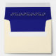 This is the coordinating envelope for the Pearls, Off White and Sapphire Blue Wedding Invitation and Save the Date. It is accented with a beautiful pearl design on the inside edge, and the return address is in an ornate, decorative type.