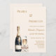 A modern, stylish and glamorous invitation for a Pearls and Prosecco birthday party (any age) An ivory background with a bottle, glass, flute with a bow with pearls. The name is written with a modern hand lettered style script. Personalize and add your party details.
