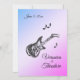 Elegant look for a guitar theme wedding. Bride and Grooms names with wedding date and guitar on front. Music notes, guitar and traditional layout of text on second side. It is easy to coordinate everything for your wedding once you choose the right theme and colour scheme. Pick a unique wedding theme design to make your special day perfect. Get matching wedding invitations, RSVP Cards, Save the Date Cards, Thank You notes and more.
