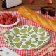 Pears pattern paper plate for the lucky pear is having a baby, couples baby shower theme.