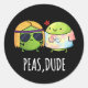 Peas Dude Funny Hippie Pea Pun Dark BG Classic Round Sticker