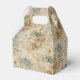 Gable style favour box with an image of brown vignettes of all things Paris amid pretty teal flowers on cream and tan. See the entire Cancan Favour Box collection in the PARTY FAVORS section.