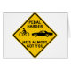 International style road and highway sign advising bicyclists to pedal harder, before they get run over. Yes, it is just sick humour.