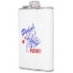 Well made flask, a little better than I had expected. Flask came in clear plastic box which gave it a nice presentation when I took it out of the zazzle packaging. Image is not printed on flask but on sticker. Don't know how this will hold up I haven't used it yet. This would make a Great gift! I plan to purchase more for friends! Cheers. I thought a little brighter than computer. Very crisp, writing wasn't