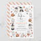 Get ready for a spooktacular Halloween baby shower! Make your Little Boo's arrival special with our personalised Peek A Boo Baby Shower Invitation. Celebrate with a unique, custom design featuring the charm of hand-painted watercolor designs of spooky ghosts, cute spiders, whimsical pumpkins, and autumnal burnt orange leaves, effortlessly blending the joy of welcoming a new baby with the fun-filled Halloween spirit. Order now and get the perfect start to your Halloween celebrations!