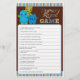 Baby shower games sheet card. Peek-a-Boo Monsters Baby Shower theme featuring blue, green brown colours and sprockets & stripes patterns. Matches MonkeyHutDesigns' baby shower invitation design #063.