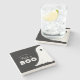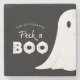 A cute ghost peeks out from the edge of the coaster. "Peek a BOO" text in fun handwritten style fonts. All colours are editable - background, text elements, and ghost. Personalise the curved text with a family name, etc. © Kimbellished, LLC