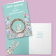 A cute little bunny rabbit peeks out from a wreath surrounded by pink and lavender spring flowers. The text "Happy Easter to a Sweet Granddaughter" is in white at the top. The image and the text are placed on a pastel spring teal background. The inside of the card has another cute image of the bunny rabbit, and your custom text in matching teal. All of the text is easily changed, so this is a wonderful card to send to a granddaughter, a niece, or a daughter.