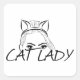 A simple b&w illustration of a woman in playful cat ears peering over the words " Cat Lady".