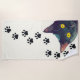 Peeking Cat and Paw Prints Design Beach Towel with customisable text. Available in three sizes and price points.