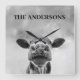 Peeking Cow Clouds Black White Square Wall Clock