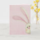 Cute peeking pink Easter rabbit on white and pink gingham background