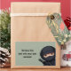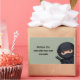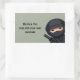 Adorable chubby yet fearsome looking little ninja is dressed in black outfit and carrying katana - traditional Japanese sword.