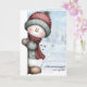 This charming winter greeting card features a whimsical snowman peeking in to say hi, bringing a touch of humor and heart. The front reads, “A little snowman popped in to say hi.” Inside, the top message continues with, “And by snowman I mean us. Sending lots of hugs, warmth, and a little winter cheer.” Personalize your custom message easily.