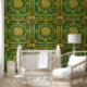 Peel and Stick Indian inspired Green Gold Pattern Wallpaper