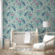 Make a statement in any room with this peel and stick wallpaper featuring elegant peacocks surrounded by lavender sprigs, roses, butterflies, and flowing teal ribbon bows. The vibrant jewel tones of teal, purple, and lavender on a soft mint background create a sophisticated yet whimsical look, perfect for adding luxury and charm to your space.