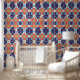Peel Stick Artdeco Tiles Pattern Blue Orange Wallpaper