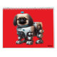 A dog calendar featuring Pekingese dogs in 12 unique and humorous depictions.