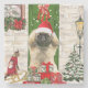 Pekingese Dog Christmas sitting outside decorated home with Christmas wreath, Christmas tree is a perfect Christmas gift idea for dog lovers.