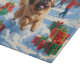 Pekingese Dog Running in Snow with Christmas Hat Cutting Board