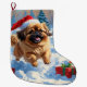 Pekingese Dog Running in Snow with Christmas Hat Large Christmas Stocking