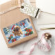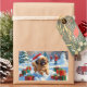 Pekingese Dog Running in Snow with Christmas Hat Rectangular Sticker