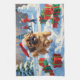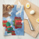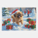 Pekingese Dog Running in Snow with Christmas Hat Tea Towel