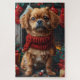 Add some holiday cheer with this charming design featuring a kawaii-style dog in a cosy sweater. Sitting joyfully by a fireplace adorned with stockings, the scene is complete with colourful presents and garlands, bringing warmth and festive vibes. The soft, playful colours capture the cosiness of the holiday season, making it a delightful way to celebrate the holidays with a joyful pup at the heart of the scene.