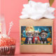A playful Halloween scene featuring a mischievous little pup peeking out of a carved pumpkin, surrounded by spooky-fun fall vibes. With cheeky charm and autumn colours, it’s the perfect touch of humour for the season.