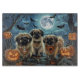 Unleash the spooky spirit with this eerie Halloween design featuring a pack of dogs under a dark, moonlit sky, surrounded by flying bats and glowing pumpkins. Perfect for those who love a touch of frightful fun with their furry friends!