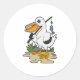 Pelican as Fisher with Fishing rod & Fish Classic Round Sticker