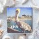 “Sun day.” This happy pelican perched on a railing overlooking a California beach screams “vacation ready”. Drift back to the warm ocean breezes while you relax with your favourite beverage on this colourful photography stone coaster.