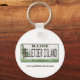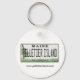 Custom keychain with the Pelletier island Maine overlaid on a Maine license plate