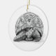 Finely detailed pen and ink turtle illustration on a round ceramic ornament.