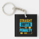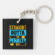 Penalty Box Hockey keychain features silhouette pucks and hockey sticks with text that reads Straight Outta the Penalty Box!