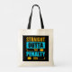 Penalty Box Hockey tote bag features silhouette pucks and hockey sticks with text that reads Straight Outta the Penalty Box!