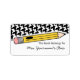 A label featuring an illustration of a yellow pencil at centre. Houndstooth above pencil. Personalise with your text below pencil. Great for a book label or other classroom use.