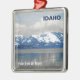 Looking east from Sandpoint, ID across Lake Pend Oreille (pond oh-ray) on a winter day; snow-covered mountains in the distance. Ice has formed at the shore and extends part way across the lake. Blues and greys are the predominate colours. Customisable text reading "IDAHO" also appears; and there is an additional place to add more text.