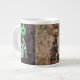 A variety of crystal stones of brown and jade on a necklace pendant showcasing on .this jumbo coffee mug.