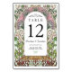 Floral Art Nouveau Wedding Table Numbers. Part of the PENELOPE 01 A Wedding Collection. High quality & detail.