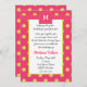 Penelope Invitation: Vibrant pink background with lime and white dots. Perfect for any age, the penelope invitation is fun, happy and full of joy. You can customise the text, its font, colour and font-family. Also is card has a lovely monogram option. Happy Party!