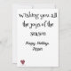 Vibrant colored letters, trees, holly and cancy canes in a cheerful message suitable for a non-religious holiday greeting. I especially liked it on the black background which made the design pop.