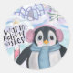 Penguin and Igloo Northern Lights Scene Classic Round Sticker