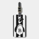 Quirky and bold black and white stripes with penguin motif, personalise with an initial on front and contact details on reverse.