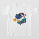 The t-shirt feels and looks great quality, a good thick cotton. It will be a little big for my son, but that means he will be able to wear it and not out grow it too soon. The print was as described on the order when personalised. True size, shape and colour T-shirt- thanks.