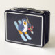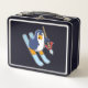 This is a standard metal lunchbox that appears to work just fine. We designed this box ourselves with an uploaded photo and custom text on the front and back. It looks absolutely beautiful except the front of the lunchbox is not centered like it shows in the photo. The print borders don't align with the inset flat part of the box where the preview photo online showed it perfectly centered in there. The back looks nice and centered though.